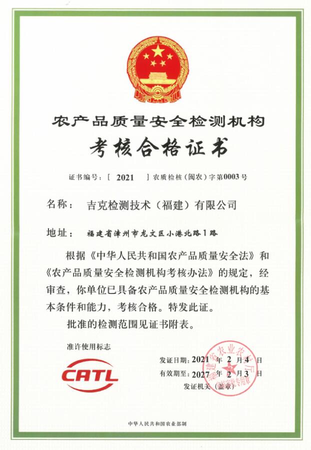 吉克檢測(cè)技術(shù)(福建)有限公司,位于福建省漳州市龍文區(qū)小港北路1號(hào),于2019年8月注冊(cè)成立,是一家獨(dú)立的第三方檢測(cè)公司。公司已經(jīng)通過檢驗(yàn)檢測(cè)機(jī)構(gòu)計(jì)量認(rèn)證(CMA)、農(nóng)產(chǎn)品質(zhì)量安全檢測(cè)機(jī)構(gòu)資質(zhì)認(rèn)證(CATL),獲得中國(guó)合格評(píng)定國(guó)家認(rèn)可委員會(huì)(CNAS)認(rèn)可。公司本著“嚴(yán)謹(jǐn)、規(guī)范、高效、協(xié)作”的原則和對(duì)客戶及社會(huì)高度負(fù)責(zé)的精神,充分利用本公司優(yōu)質(zhì)的檢測(cè)環(huán)境、先進(jìn)的檢測(cè)設(shè)備和專業(yè)的技術(shù)人員,第一時(shí)間為客戶提供科學(xué)、公正、準(zhǔn)確的檢驗(yàn)檢測(cè)報(bào)告。       公司實(shí)驗(yàn)室面積1100多平方米,儀器設(shè)備兩百多臺(tái)(套),固定資產(chǎn)一千多萬元,在職員工31人,技術(shù)人員中的中高級(jí)職稱及同等能力人數(shù)占60%以上。我們的服...
